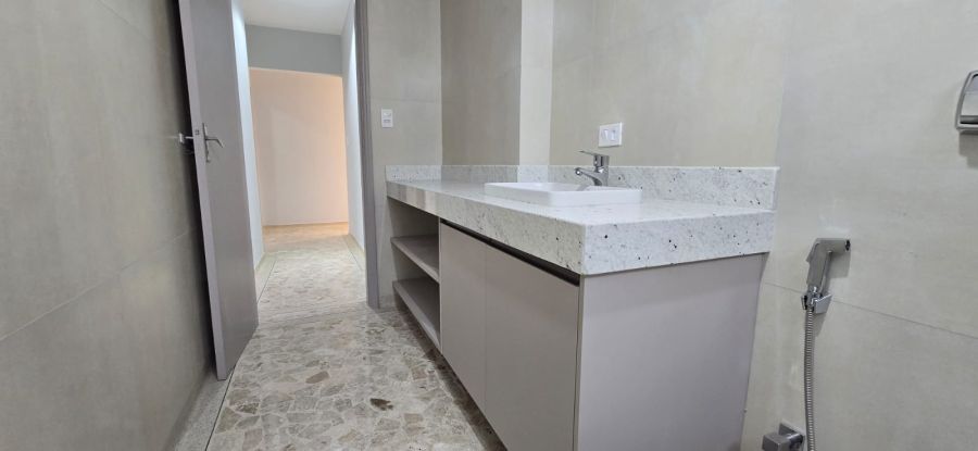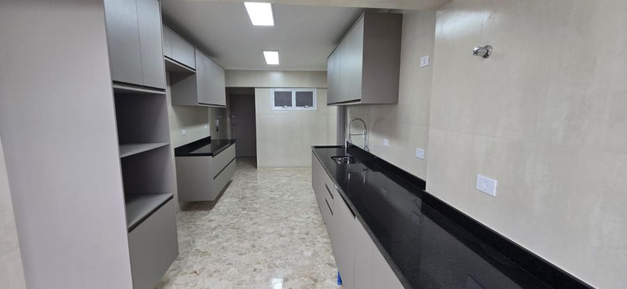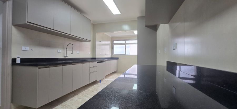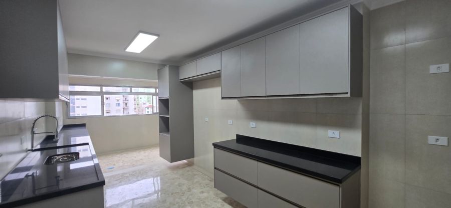 O imóvel completamente reformado, possui uma área privativa de 170,00 m² e área total de 217,00 m². Sua planta é distribuída de forma funcional, contemplando três dormitórios sendo uma suíte, (todos com vista mar) além de dois banheiros completos e um lavabo, tendo ainda um escritório para home office. A unidade conta ainda com uma suíte que serve como dependência. A área social é composta por uma sala ampla, permitindo a criação de ambientes distintos para estar e jantar, complementadas por uma vista panorâmica da Baía de Santos. todos os ambientes são climatizados com aparelhos de ar condicionado Split (novos). A cozinha é totalmente planejada, com móveis de primeira linha.