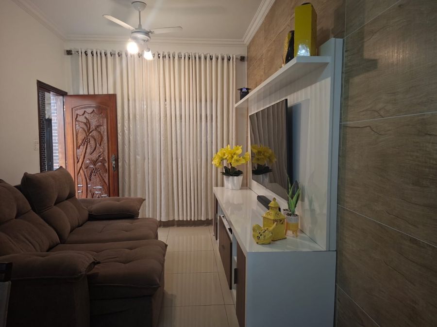 Esta residência semimobiliada, situada na Rua Santa Cruz, representa uma rara oportunidade em um dos pontos mais consolidados do Centro de São Vicente. Com uma área total e privativa de 90,29 m², o imóvel é distribuído de forma funcional, contando com dois dormitórios, banheiro social e uma sala de estar equilibrada. A oferta de duas vagas de garagem em uma localização central é um diferencial técnico significativo, atendendo a uma demanda latente por conveniência e segurança na região.