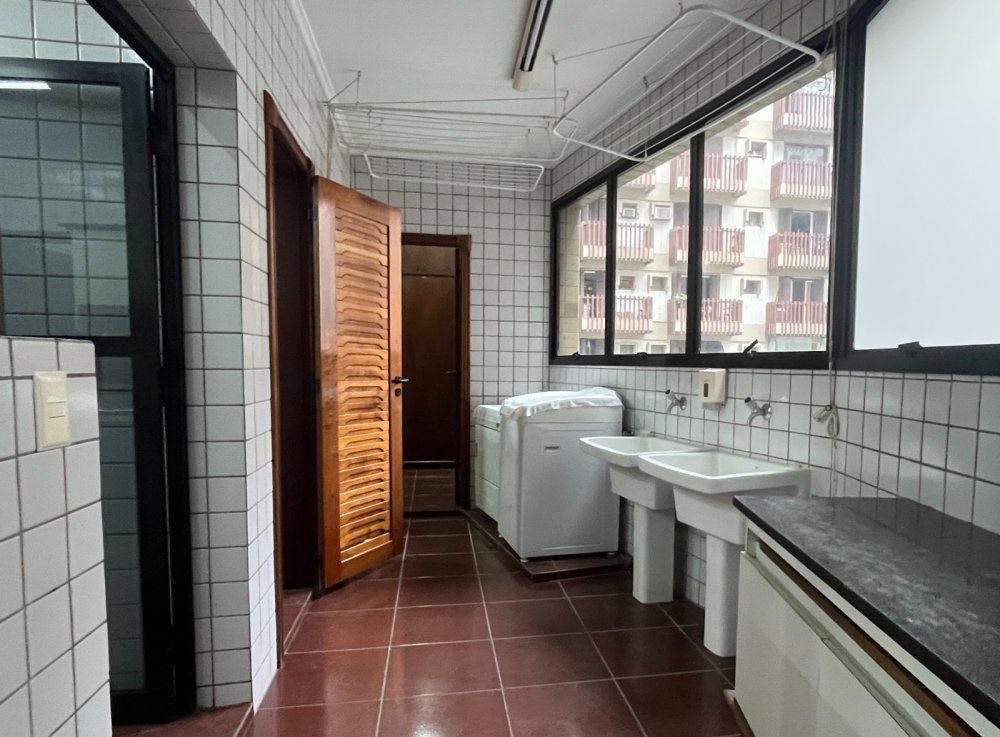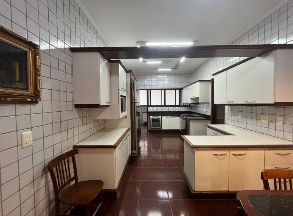 A cozinha com 7 metros lineares, funcional e bem equipada, se integra à área de serviço, que dispõe de dependência completa para empregada. As 2 vagas de garagem garantem a segurança e praticidade para seus veículos.