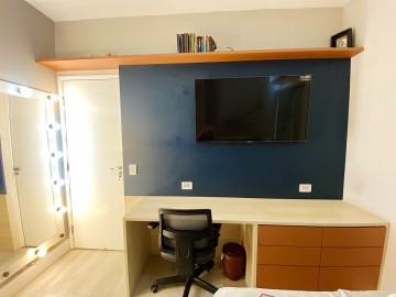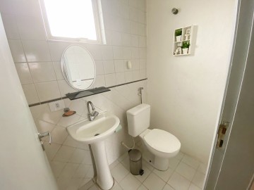 No primeiro pavimento temos três dormitórios sendo uma suite, todos com armários, um banheiro social e uma saleta que pode servir de escritório. No segundo pavimento temos sala de estar, sala de jantar, sala de televisão, todas integradas, um lavabo, cozinha com armários, área de serviço e uma dispensa.