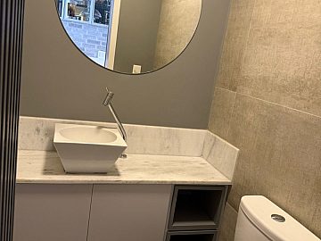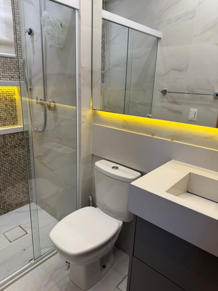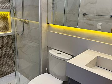 * 04 banheiros no total, com acabamentos de qualidade e sistema de água quente;
